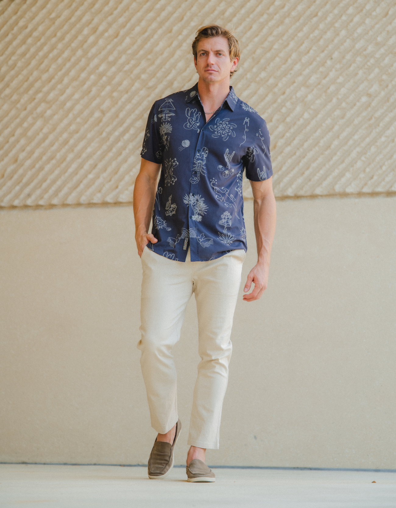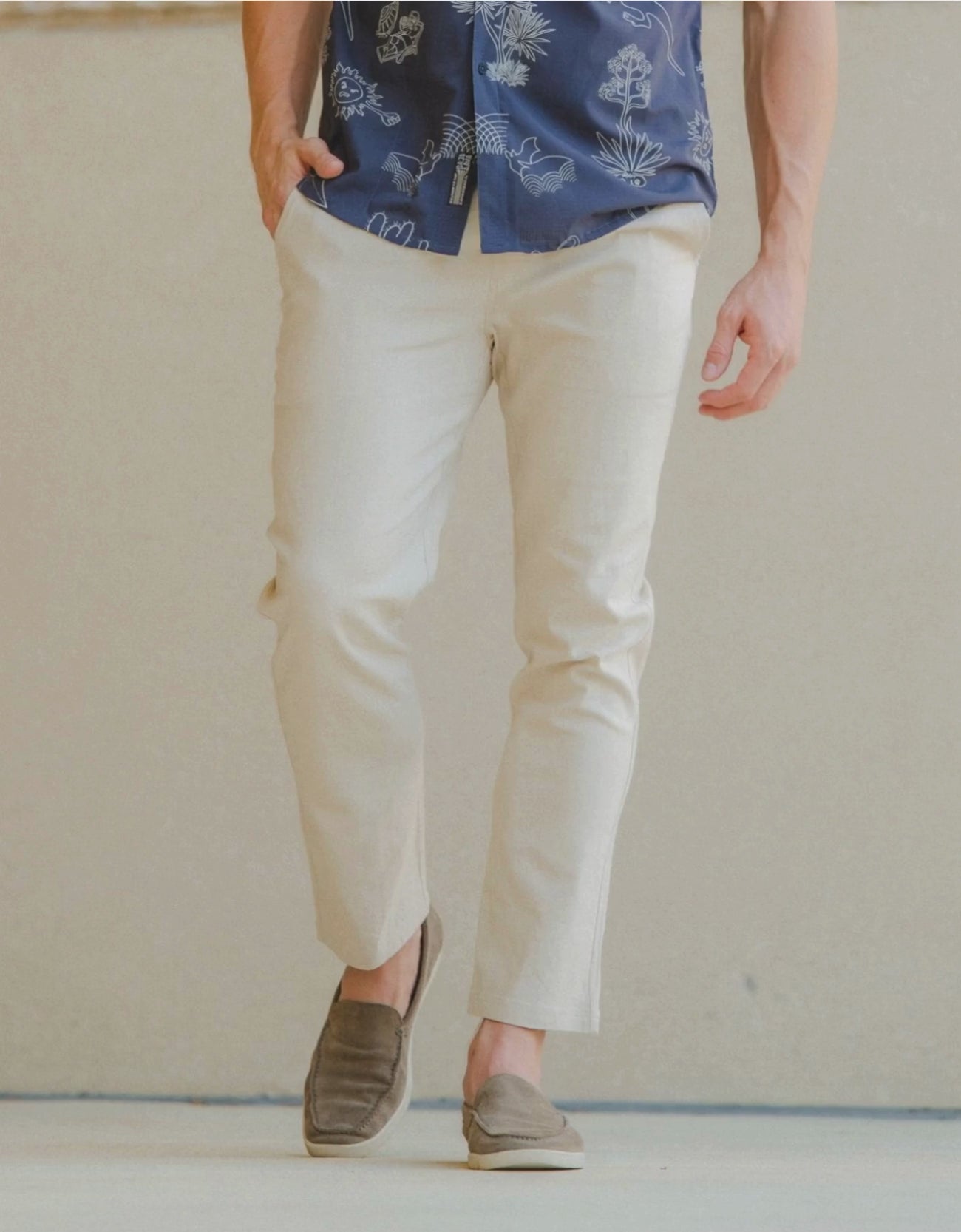 These pants are designed for warm climates and are ideal for resort wear and travel. Their breathable, lightweight fabric and relaxed fit make them suitable for villa mornings and sharp enough for dinner by the water.