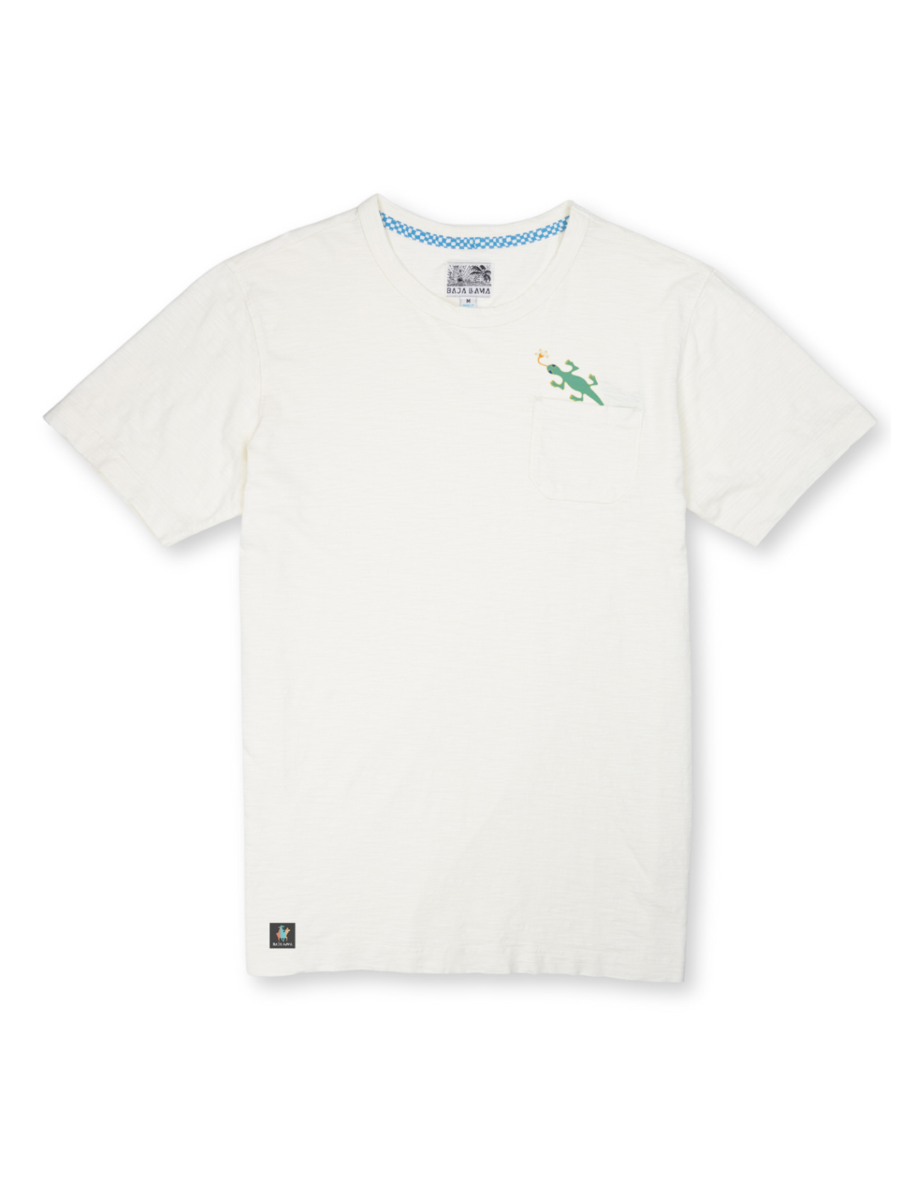 Sewn on premium woven neck label and signature Sloth Llama label at right hip.